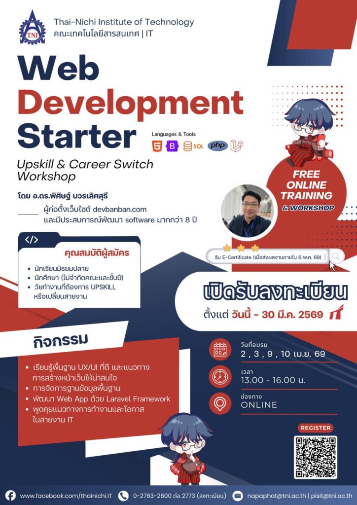 คณะเทคโนโลยีสารสนเทศ สถาบันเทคโนโลยีไทย-ญี่ปุ่น ขอเชิญผู้ที่สนใจด้านการพัฒนาเว็บไซต์เข้าร่วมอบรม